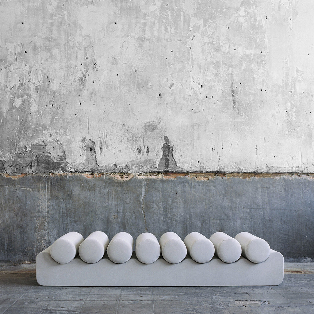 La Pepino is a collection of seating, which consists of the repetition of cylindrical cushions, supported by an organically shaped base. Every piece comes entirely upholstered in customizable fabric, and plays with the different points of contact between cushion and body. The Barcelona-based designer Alfredo Lopez designs and manufactures unique furniture and objects, mainly but not exclusively in wood. Each of his pieces are handmade and built in his workshop / studio in Barcelona called OWL. All designs are made of high-quality, sustainable materials sourced from local suppliers. Every piece is made to order, shipped in custom packaging.