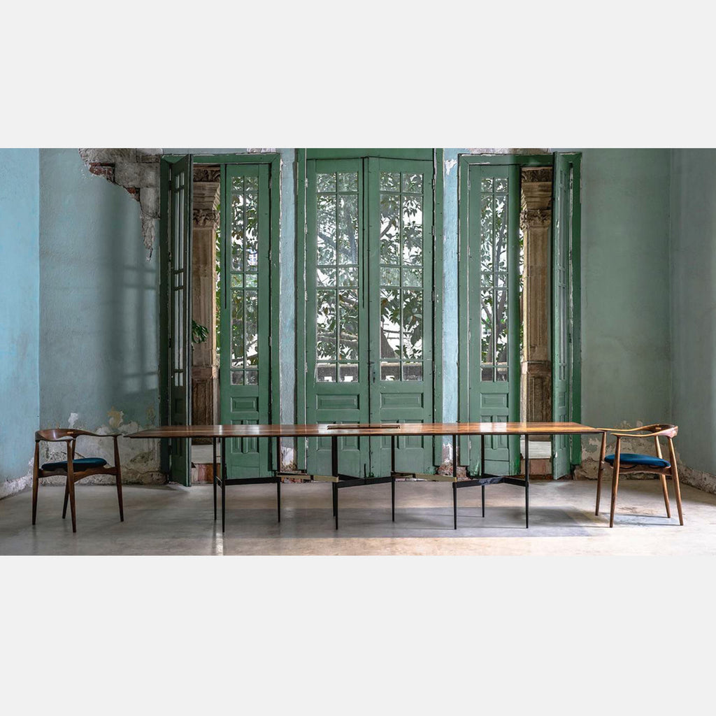 Brass, Metal and Custom Hardwood Dining Table