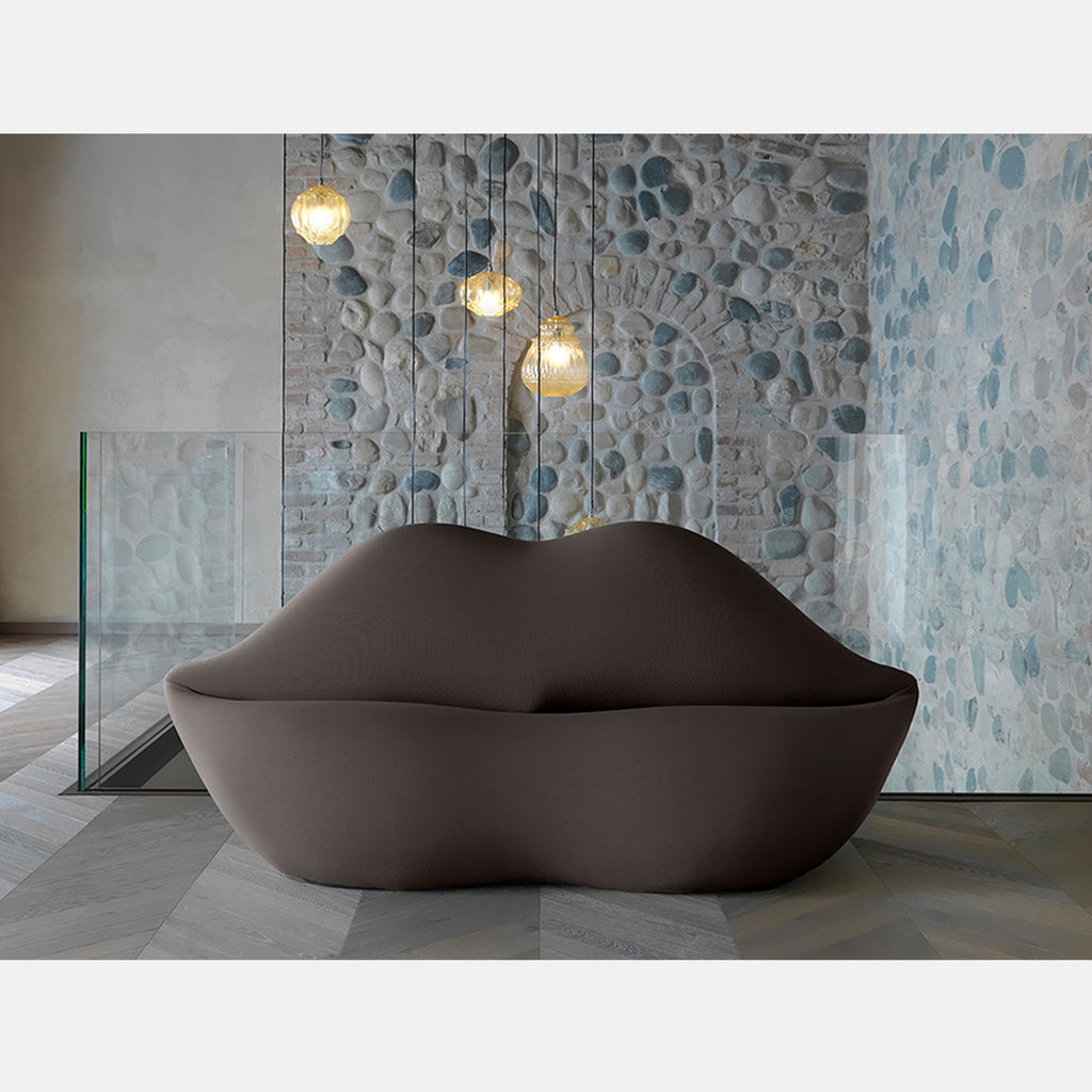 Kalkeriet Contemporary is pleased to present the iconic lip-shaped Bocca sofa, manufactured by Gufram. 25 new colors in bouclé, were released in conjunction with its 50th anniversary. The bouclé wool absorbs light in a whole new way and reinforces Bocca’s ability to restore its sculptural presence to the rooms. Originally designed by Studio 65 architect Franco Audrito (b. 1943) in 1970. Evoking Salvador Dalí’s 1930s artwork Mae West’s Face which May be Used as a Surrealist Apartment, this welcoming soft polyurethane iconic piece has been exhibited and are represented in some of most important museums in the world, such as the Louvre, Paris, MoMA, New York, and the Design Museum in Monaco. Franco Audrito founded Studio65 in Turin in 1965 as an avant-garde experimentation collective that brought together a group of artists, painters, photographers, and aspiring filmmakers- all students of the Faculty of Architecture. Since 1966 Gufram has been producing design icons that have become unique in form and value thanks to the cross-contamination between the industrial design approach, the artisanal creation and the imaginative flair typical of art.