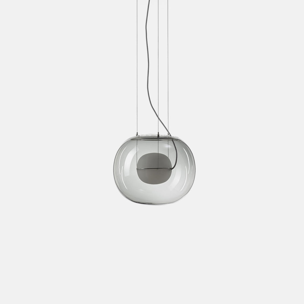 Kalkeriet Contemporary is pleased to present Big One, a blown glass pendant designed by Lucie Koldova for Brokis. Big One embodies a gentle poetry, simplicity, purity, and balanced proportions. A key role is played by the inosculation of luminous bodies and their mutual interaction in space – the light emitted from the smaller glass core flows freely through the atoms of air within the symbolic protective shell of the outer globe, while the sophisticated design of a bubble suspended in a large sphere evokes a sense of levitation. In keeping with the brand’s ongoing development of new technologies at the highest levels of quality and innovation, the Big One collection has received a technological upgrade in the form of new LED modules that significantly increase the output of the lights while simultaneously guaranteeing reliability and longevity. Improved metal components simplify handling and improve cooling of the light. The outer handblown glass features a gloss finish in the following colour options: transparent, smoke grey transparent, and a new smoke brown. The inner glass features a matte finish in the following colour options: triplex opal, smoke grey transparent, red transparent, light pink transparent, and a new smoke brown. The collection also offers several dimming options for greater comfort and flexibility in setting the right mood, and the Tunable White function lets the user adjust the colour temperature of the light.