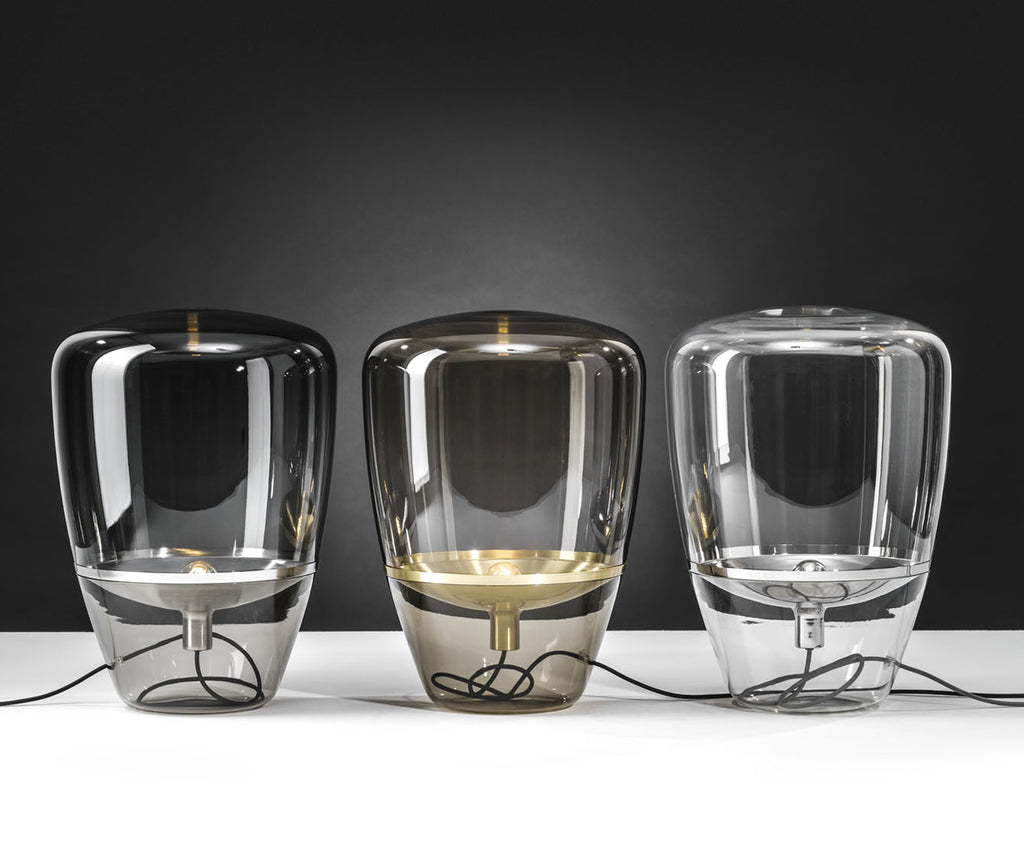 Kalkeriet Contemporary is pleased to present Ballon floor lamp designed by Lucie Koldova and Dan Yeffet for Brokis. Balloons is a collection of timeless lights embodying rudimental forms evoking images of hot air balloons, captivates with the beauty of large-format handblown glass and an elegant metal reflector hovering within. The design’s charm lies in the use of two independent glass sections to achieve the impression of an integral whole. Lavish proportions and an elegant hand-pressed metal reflector are the collection’s defining traits. The size of the largest shade pushes the very boundaries of glassblowing technology and illustrates the exceptional skill and craftsmanship of Bohemian glassmakers. The Balloons collection is one of the pillars of the BROKIS portfolio. The lights come in three sizes. Balloons also make an outstanding sculptural statement during the day when they are switched off.