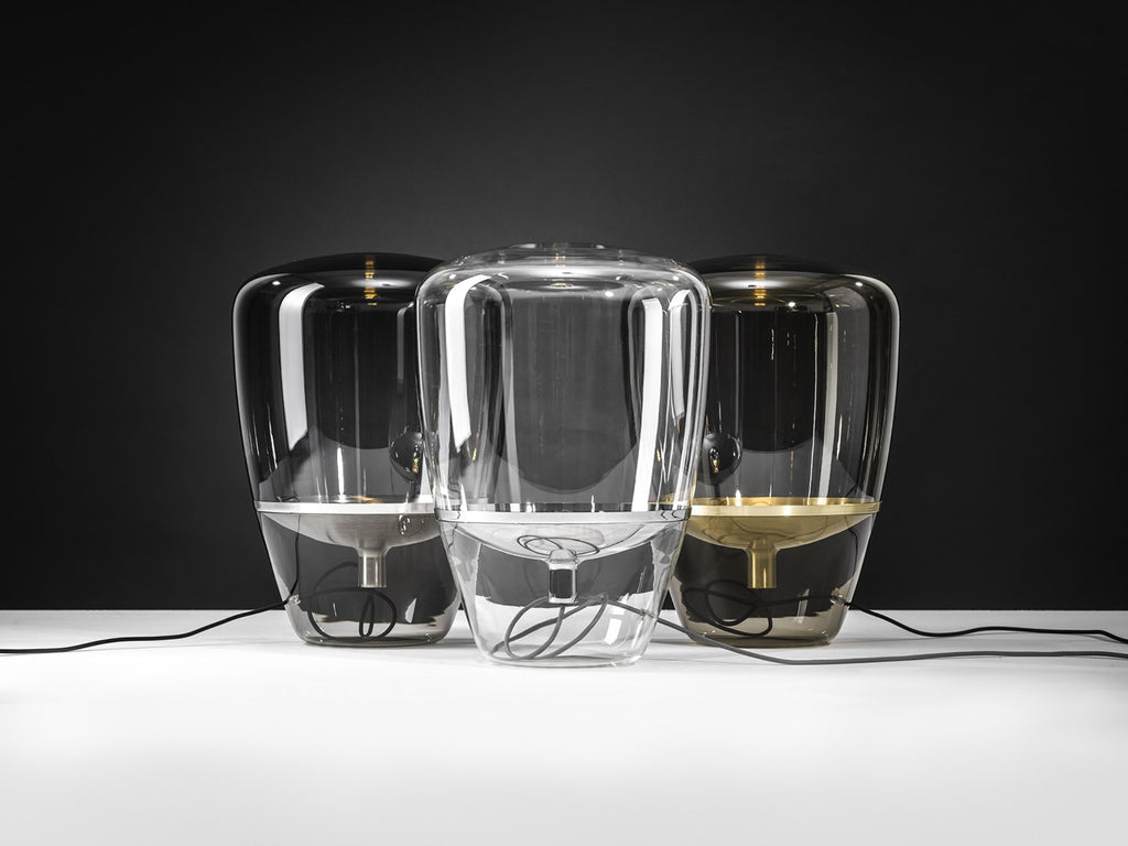 Kalkeriet Contemporary is pleased to present Ballon floor lamp designed by Lucie Koldova and Dan Yeffet for Brokis. Balloons is a collection of timeless lights embodying rudimental forms evoking images of hot air balloons, captivates with the beauty of large-format handblown glass and an elegant metal reflector hovering within. The design’s charm lies in the use of two independent glass sections to achieve the impression of an integral whole. Lavish proportions and an elegant hand-pressed metal reflector are the collection’s defining traits. The size of the largest shade pushes the very boundaries of glassblowing technology and illustrates the exceptional skill and craftsmanship of Bohemian glassmakers. The Balloons collection is one of the pillars of the BROKIS portfolio. The lights come in three sizes. Balloons also make an outstanding sculptural statement during the day when they are switched off.