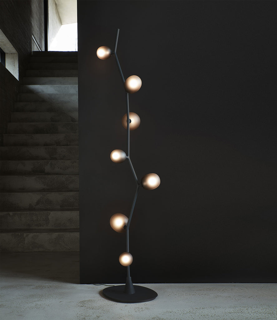 Kalkeriet Contemporary is pleased to present Ivy, a floor lamp designed by Lucie Koldova for Brokis. Nature and its life-giving beauty and strength are the inspiration behind the unique lighting concept called Ivy. Just as the plant grows and climbs up the wall of a house, so too can Ivy expand into a variety of compositions. Ivy features a special system of modular components for a highly innovative take on decorative lighting in both vertical and horizontal installations. The light comprises a metal frame and a handblown matte light rose, opal, or smoke glass shade. Elegant and precise in craftsmanship all the way down to the smallest detail, Ivy is a high-tech lighting concept ideally suited to project and residential applications. In intimate home settings, for example, Ivy Table can be used as a solitary source of light, or it can be augmented with branches from the other series in the collection. The organic Ivy collection has many forms and rightfully holds its place in the realm of artistic, bespoke lighting solutions.