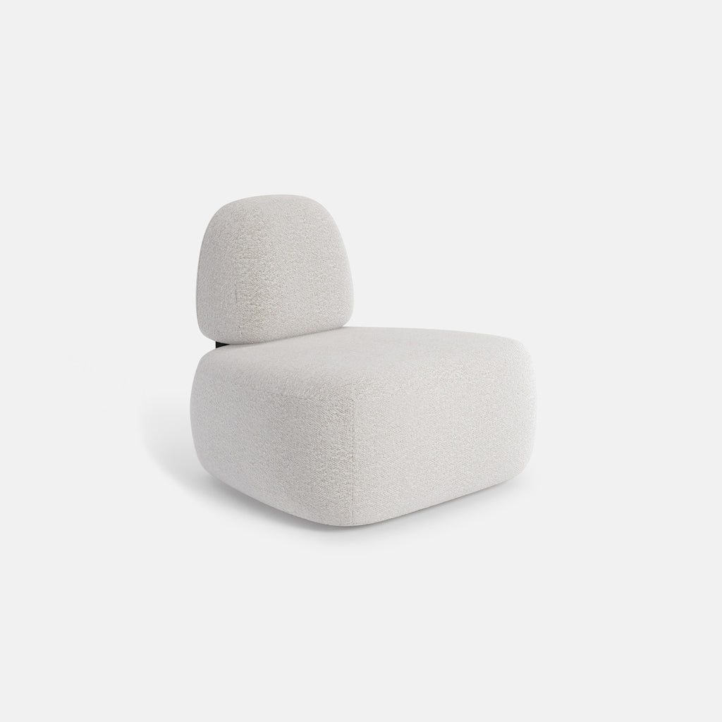 Upholstered in white bouclé and wood