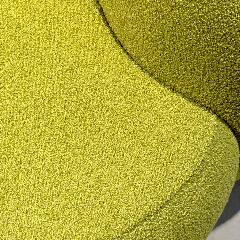 Upholstered sofa in bouclé, wood base and with incorporated side tables