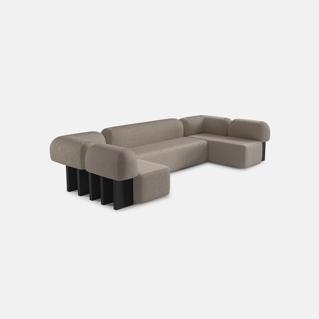 Kalkeriet Contemporary is pleased to present Yemeni Sofa by Secolo, manufactured and designed in Italy. The Yemeni Series takes its name from the incredible ruins and remains of monuments left in the Yemeni Deserts. Parallel slabs of solid wood support an upholstered back, giving a surprising yet functional detail. Available in large single seater, corner and sofa versions. Wood internal structure with non deformable foam in different densities and polyester fibre layer. Back supports in solid wood. All Secolo's pieces are made to order and highly customisable, from the materials to the finishes and in some cases even dimensions. Under the artistic direction of Lorenzo Scisciani, Salvatore Morales and Sacha Andraos, members of Artefatto Design Studio, Secolo creates contemporary design pieces that address the dialogue of art, design and architecture.