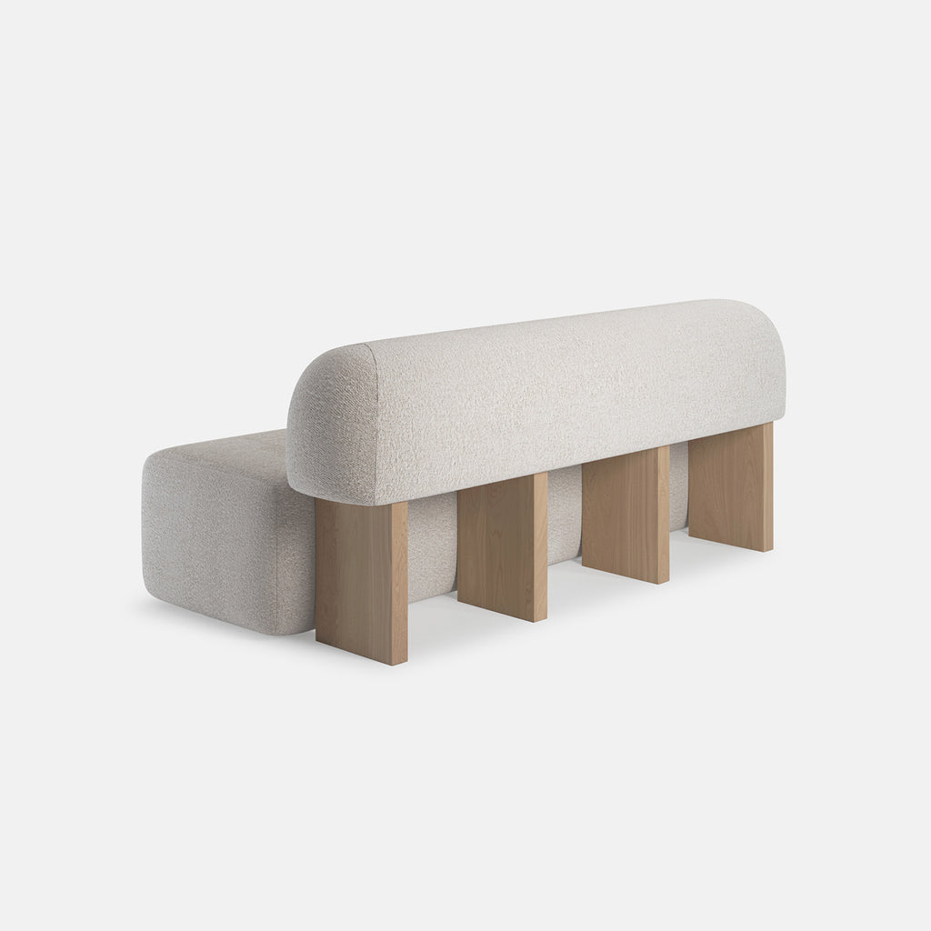 Kalkeriet Contemporary is pleased to present Yemeni Sofa by Secolo, manufactured and designed in Italy. The Yemeni Series takes its name from the incredible ruins and remains of monuments left in the Yemeni Deserts. Parallel slabs of solid wood support an upholstered back, giving a surprising yet functional detail. Available in large single seater, corner and sofa versions. Comes assembled. All Secolo's pieces are made to order and highly customisable, from the materials to the finishes and in some cases even dimensions. Under the artistic direction of Lorenzo Scisciani, Salvatore Morales and Sacha Andraos, members of Artefatto Design Studio, Secolo creates contemporary design pieces that address the dialogue of art, design and architecture.