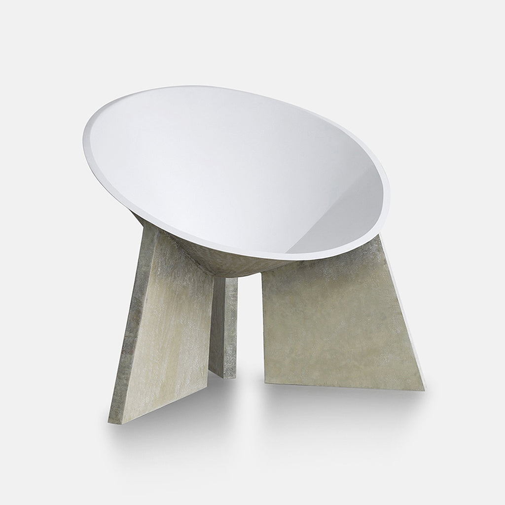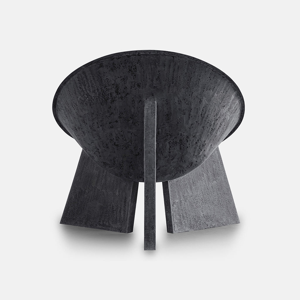 Kalkeriet Contemporary is pleased to present Arché by artist and designer Verter Turroni. This lounge chair features strong, solid legs with clear geometries that support the circular harmony of the deep seat. The result is a unique design that is both futuristic and primitive. An evocative shape like a metaphor, enriching indoors and outdoors with its symbolic beauty. Turroni's artistic workshop Imperfetto Lab is located in Gambettola, Emilia Romanga, Italy. The studio was founded in 1992, by Turroni and his wife Emanuela Ravelli. Each exclusive piece is made from a common mould, which is then sanded, painted, and hand-polished. The working process differs for each type of object, thus becoming unique in its genre. Their pieces is mainly manufactured in fiberglass, a highly versatile lightweight material that is resistant to any weather conditions, suitable for both indoor and outdoor use. Available in a wide range of formulations, fiberglass couples the formability of plastic with the strength of glass. Pound–for–pound, fiberglass is even stronger than steel or aluminum. Imperfetto Lab combines exceptional attention to detail with first-class craftsmanship, making each design a work-of-art. Their own gallery promotes a wide range of art research projects, and organizes exhibitions and performances. Since 2001, it has been a place where artists can experiment with and validate their work.