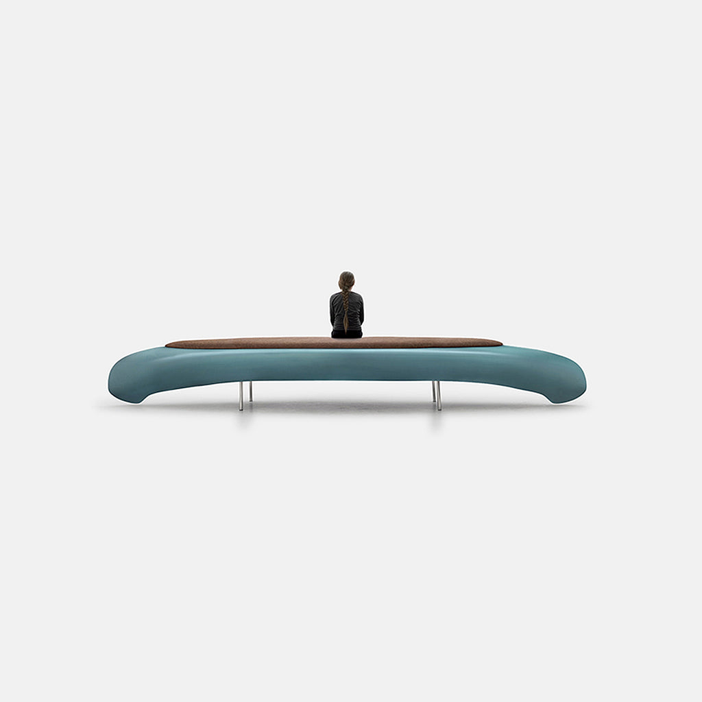 Kalkeriet Contemporary is pleased to present Canoa by artist and designer Verter Turroni. A bench with an original design reminiscent of a canoe. Fiberglass sculpts its curved lines, steel anchors its foundations to the ground, the fabrics and softness enhance its comfort. A seat of great impact, which at first glance delimits the horizon and at first touch makes its guest a passenger on an imaginary cruise. Turroni's artistic workshop Imperfetto Lab is located in Gambettola, Emilia Romanga, Italy. The studio was founded in 1992, by Turroni and his wife Emanuela Ravelli. Each exclusive piece is made from a common mould, which is then sanded, painted, and hand-polished. The working process differs for each type of object, thus becoming unique in its genre. Their pieces is mainly manufactured in fiberglass, a highly versatile lightweight material that is resistant to any weather conditions, suitable for both indoor and outdoor use. Available in a wide range of formulations, fiberglass couples the formability of plastic with the strength of glass. Pound–for–pound, fiberglass is even stronger than steel or aluminum. Imperfetto Lab combines exceptional attention to detail with first-class craftsmanship, making each design a work-of-art. Their own gallery promotes a wide range of art research projects, and organizes exhibitions and performances. Since 2001, it has been a place where artists can experiment with and validate their work.