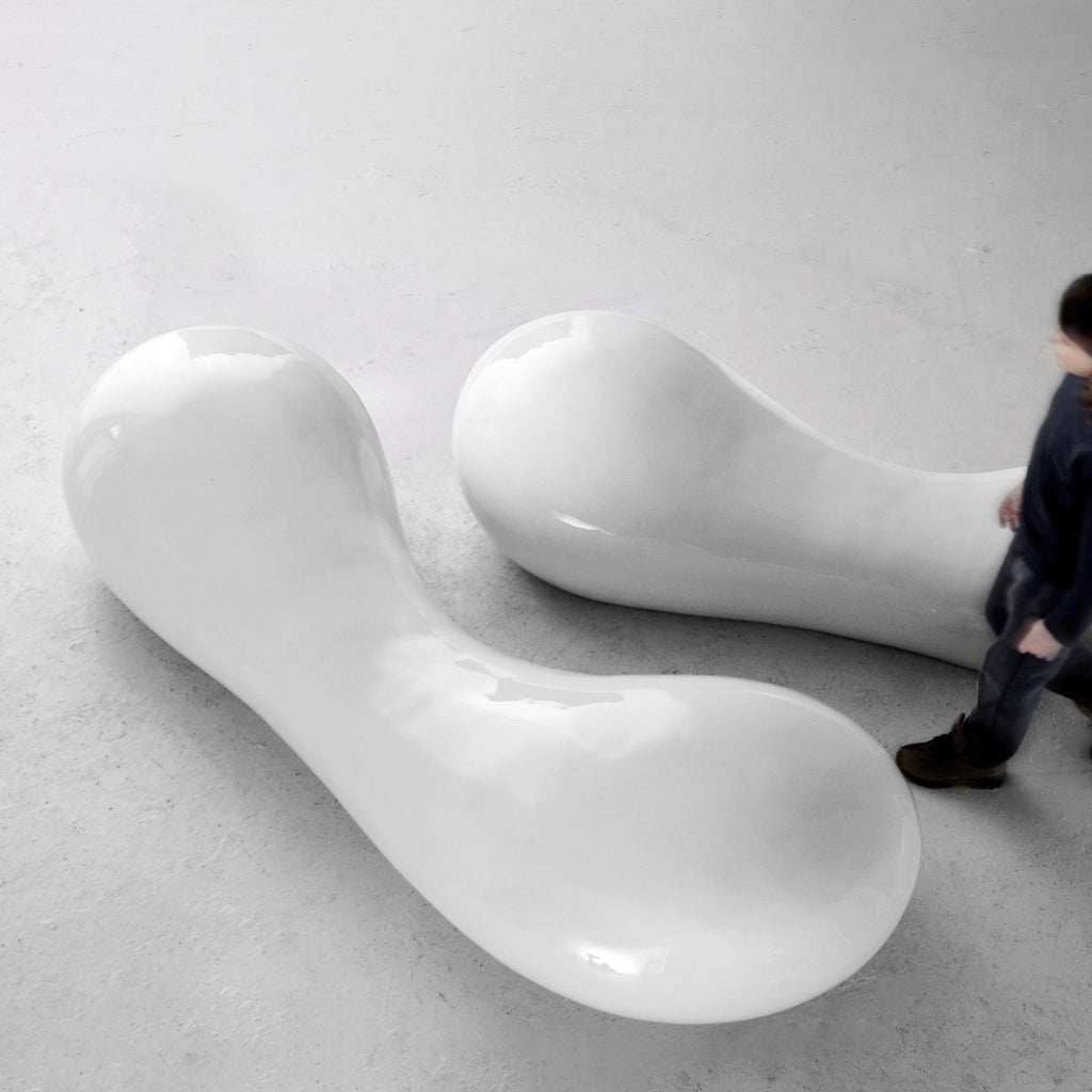 Kalkeriet Contemporary is pleased to present Gamete Bench by artist and designer Verter Turroni. Turroni's artistic workshop Imperfetto Lab is located in Gambettola, Emilia Romanga, Italy. The studio was founded in 1992, by Turroni and his wife Emanuela Ravelli. Each exclusive piece is made from a common mould, which is then sanded, painted, and hand-polished. The working process differs for each type of object, thus becoming unique in its genre. Their pieces is mainly manufactured in fiberglass, a highly versatile lightweight material that is resistant to any weather conditions, suitable for both indoor and outdoor use. Available in a wide range of formulations, fiberglass couples the formability of plastic with the strength of glass. Pound–for–pound, fiberglass is even stronger than steel or aluminum. Imperfetto Lab combines exceptional attention to detail with first-class craftsmanship, making each design a work-of-art. Their own gallery promotes a wide range of art research projects, and organizes exhibitions and performances. Since 2001, it has been a place where artists can experiment with and validate their work.