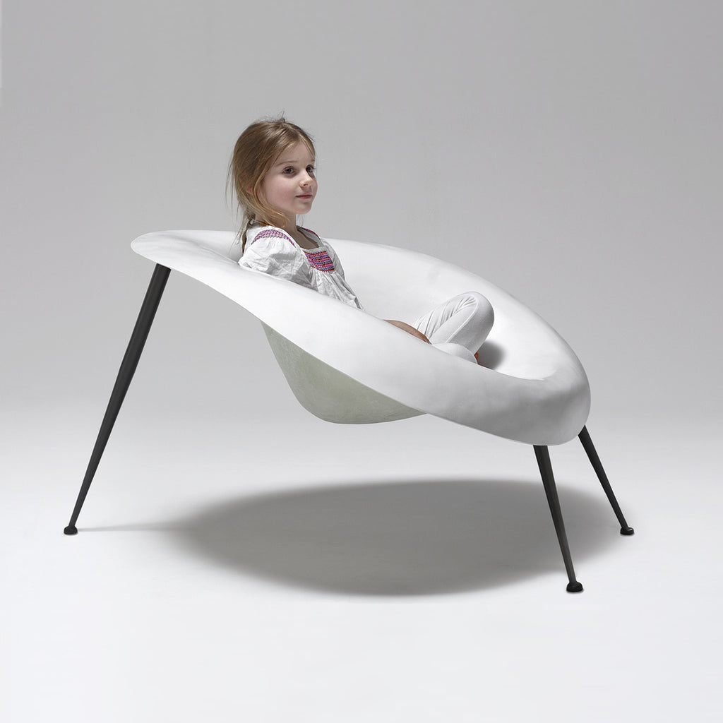 Kalkeriet Contemporary is pleased to present Nido White lounge chair by artist and designer Verter Turroni. His artistic workshop Imperfetto Lab is located in Gambettola, Emilia Romanga, Italy. The studio was founded in 1992, by Turroni and his wife Emanuela Ravelli. Each exclusive piece is made from a common mould, which is then sanded, painted, and hand-polished. The working process differs for each type of object, thus becoming unique in its genre. Their pieces is mainly manufactured in fiberglass, a highly versatile lightweight material that is resistant to any weather conditions, suitable for both indoor and outdoor use. Available in a wide range of formulations, fiberglass couples the formability of plastic with the strength of glass. Pound–for–pound, fiberglass is even stronger than steel or aluminum. Imperfetto Lab combines exceptional attention to detail with first-class craftsmanship, making each design a work-of-art. Their own gallery promotes a wide range of art research projects, and organizes exhibitions and performances. Since 2001, it has been a place where artists can experiment with and validate their work.