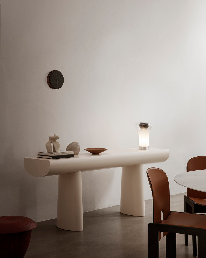 Kalkeriet Contemporary is pleased to present Saffo, mouth blown lamp designed by Angelo Mangiarotti in 1967. Architect, designer, sculptor, Angelo Mangiarotti was a leading figure in the art and design worlds with an eclectic career that saw him involved in projects of various types, from product design to sculpture and architecture. Born in Milan in 1921, he obtained his degree in Architecture from the Milan Politechnic. Subsequently, he worked on the design of the Milan Triennale in 1948. A few years later, he went to the United States as a visiting professor and came into contact with some of the greatest 20th century architects, including Frank Lloyd Wright, Walter Gropius and Ludwig Mies van der Rohe. In 1955, he returned to Milan and founded a design firm with his colleague Bruno Morassutti. His work focused mainly on residential buildings - including the Feltre district in Milan - and product design. The first version of his famous "59" chair dates to this period. Founded on rebellious curiosity and a passion for the unique, Karakter is a bit out of the ordinary. Rooted in the proud Danish design tradition, but always maintaining an international outlook, Karakter presents a striking portfolio of furniture, lighting and objects from designers who have already written the history of design to those who are aspiring to write the future.