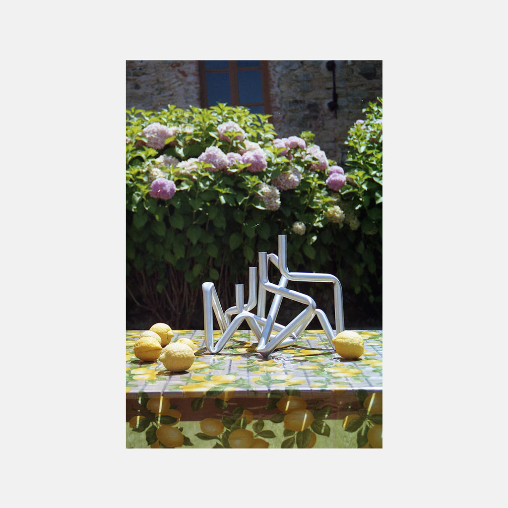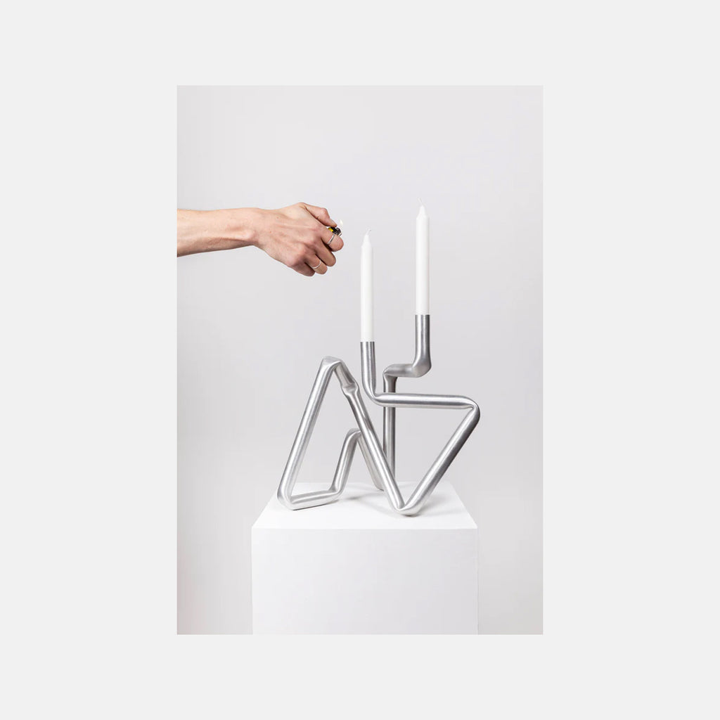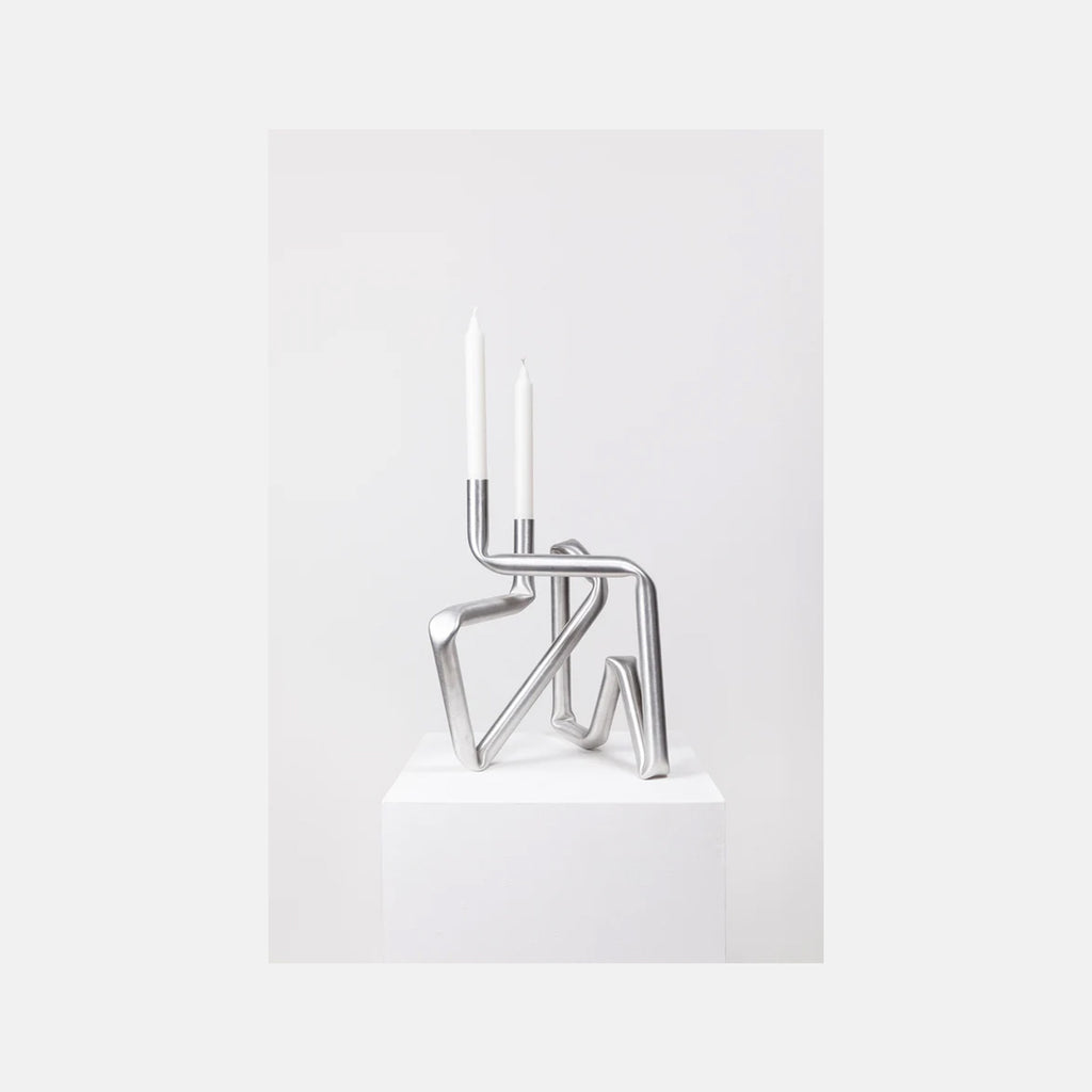 Kalkeriet is pleased to present the Bucatini candle holder, part of the AOT STUDIO (And Other Things) Primi collection. Crafted from 1.5 meters of aluminum tubing, each piece is meticulously hand-made in Denmark, showcasing unique character through subtle variations in shape. The brushed aluminum finish emphasizes the material's raw beauty and makes a striking statement.
