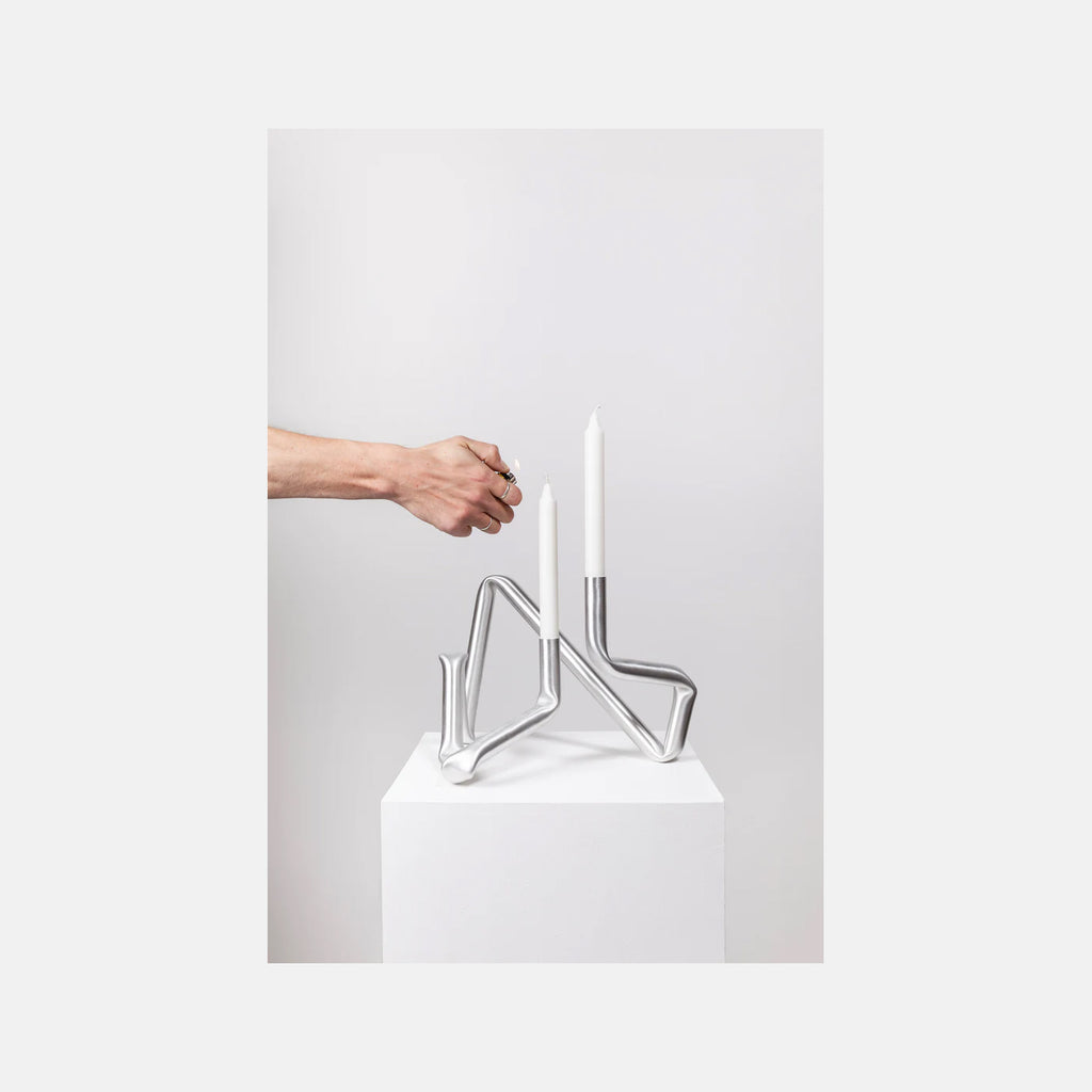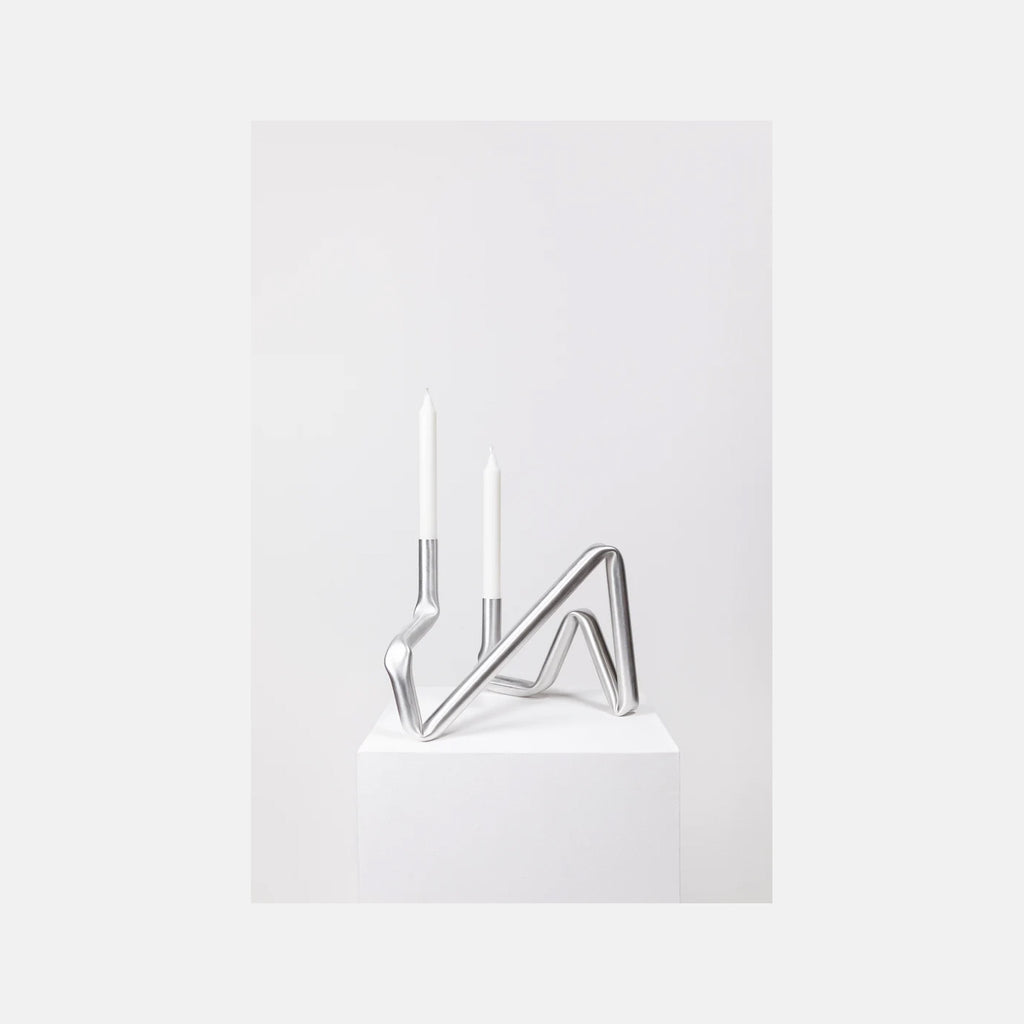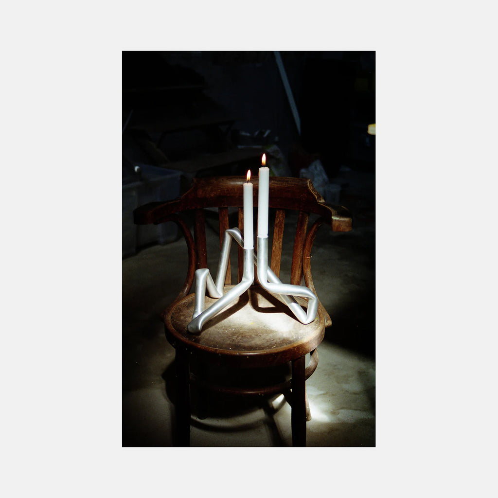 Kalkeriet is pleased to present the Bucatini candle holder, part of the AOT STUDIO (And Other Things) Primi collection. Crafted from 1.5 meters of aluminum tubing, each piece is meticulously hand-made in Denmark, showcasing unique character through subtle variations in shape. The brushed aluminum finish emphasizes the material's raw beauty and makes a striking statement.