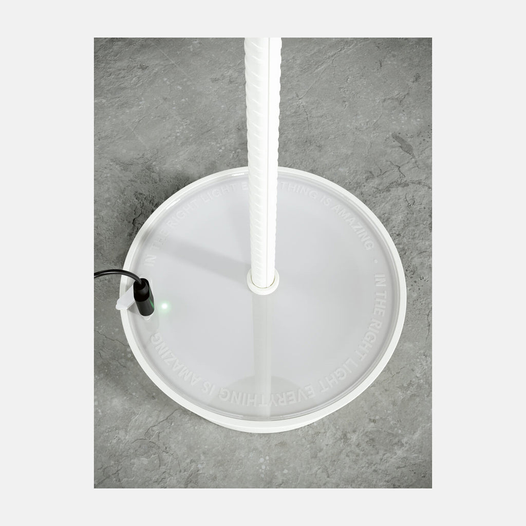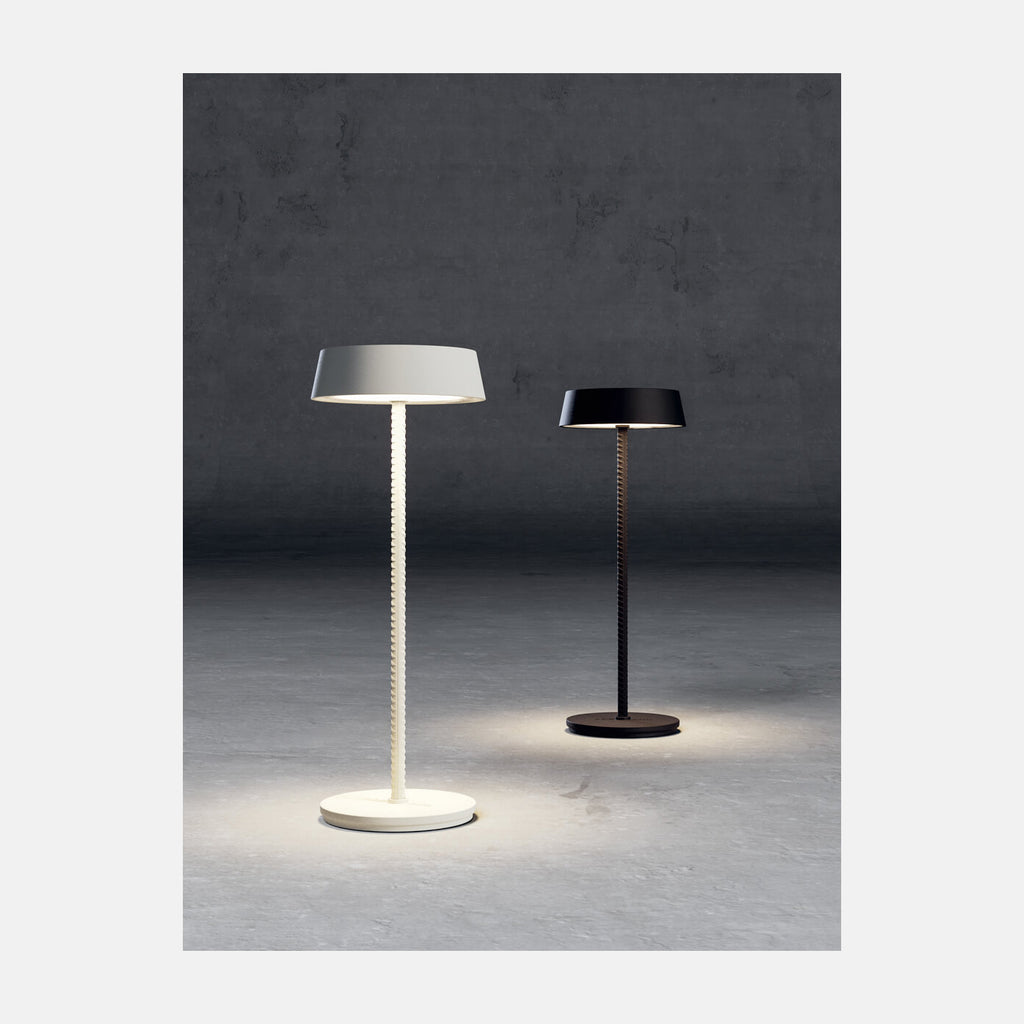 Rod’s design concept originates from the form of a construction rod. The slender stem connects two imaginary blocks of cement, rising from the base and supporting the shade, which hosts the LED light source. To adjust the level of light, the user can simply touch the top of the shade.