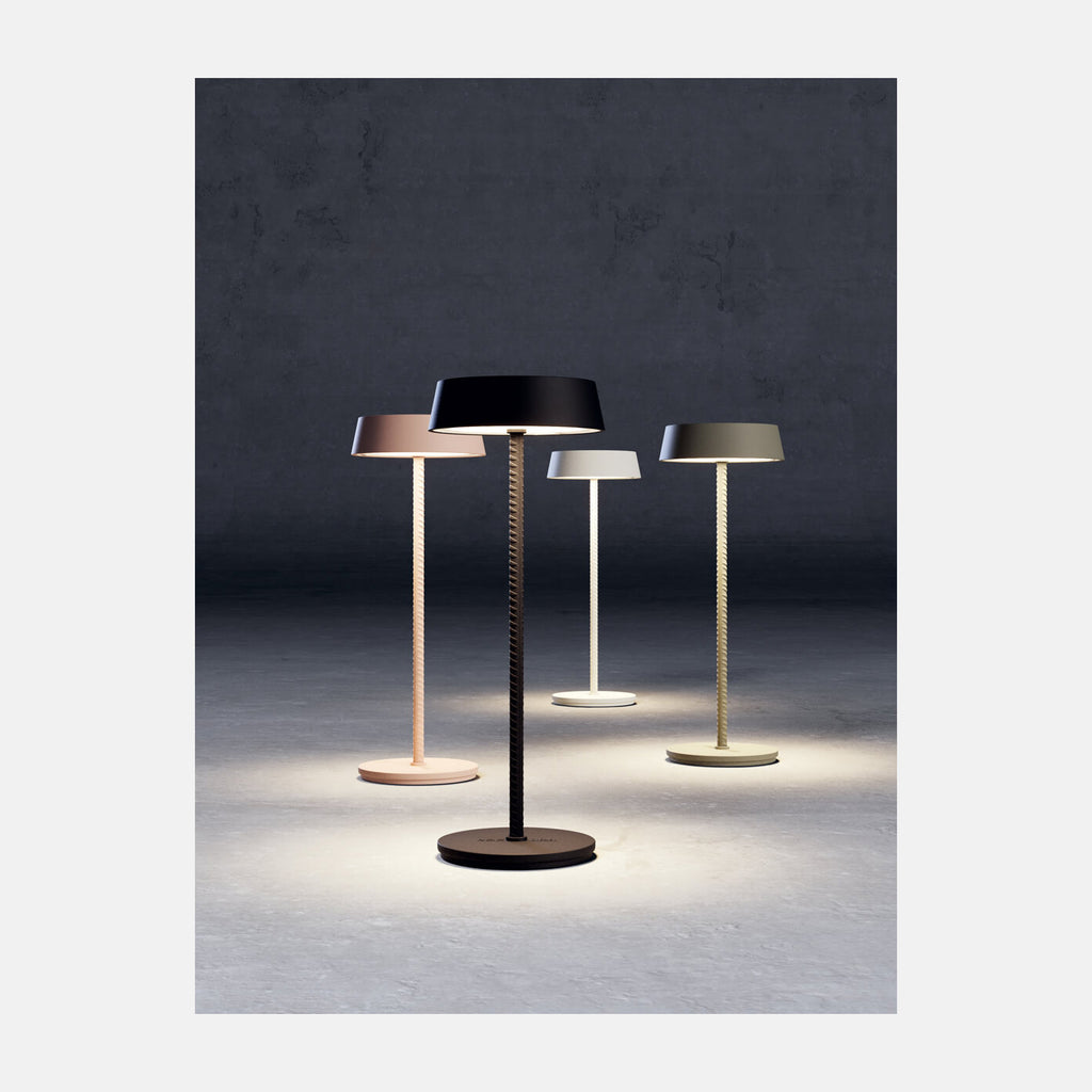 A cordless table lamp available in different finishes