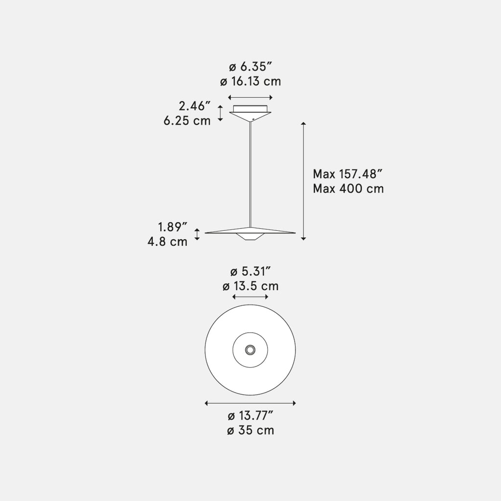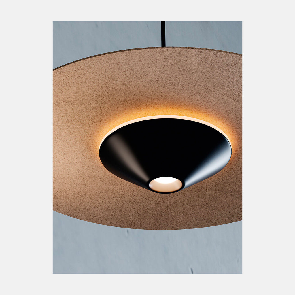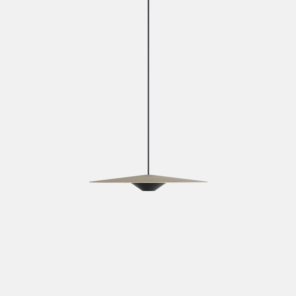 Kalkeriet Contemporary is pleased to present U.F.O. A pendant lamp named after the collective imagination associated with unidentified flying objects. The lamp has a wide, flattened conical metal diffuser with an ultra-thin profile that keeps the space open. Its LED light casts a focused beam, evenly illuminating below.