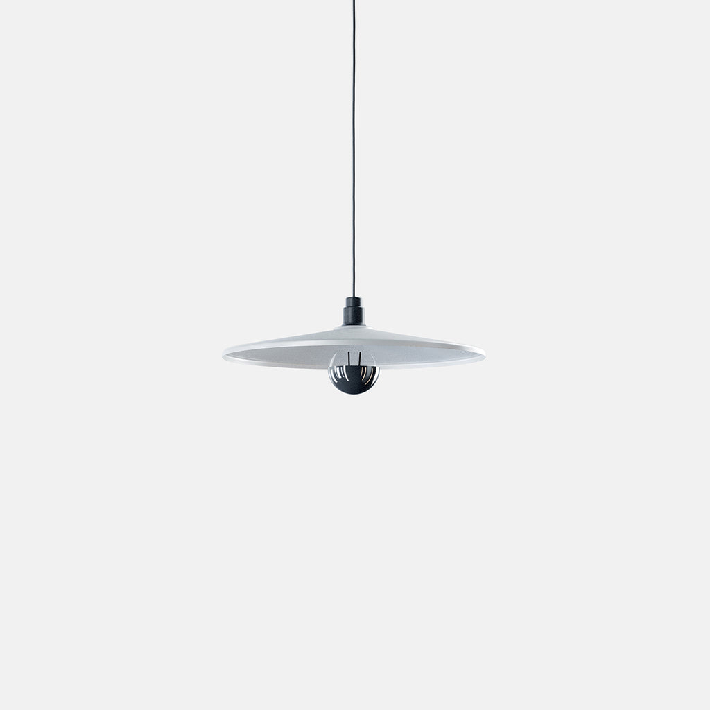 Kalkeriet Contemporary is pleased to present Vinyl. A pendant lamp made up of a metal plate with a circular engraved texture reminiscent of a music record, emulating sound vibrations whilst dividing the light in a captivating manner to the human eye. For wall and ceiling versions it is recommended to use shielded light bulbs for an indirect, grazing light effect on the surface, which will seem to vibrate.