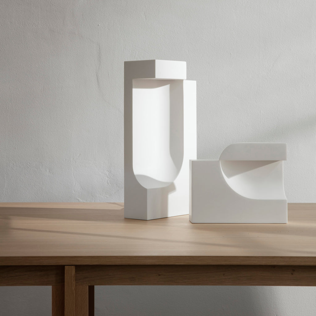 Kalkeriet Contemporary is pleased to present Moby 2, a table lamp designed by Birgitte Due Madsen & Jonas Trampedach in 2015. A perfect fit for modern spaces, Moby 2 features a distinctive character of harmonious and playful contrasts, matched with a refined sculptural design. In 2016, Birgitte Due Madsen and Jonas Trampedach received the prestigious Silver Hetsch medal for Moby, the highest recognition available from the Danish Art and Crafts Movement of 1879. The two designers run separate studios in Copenhagen, but their collective fondness of the soft, delicate plaster material, typically used for fine art and prototypes, led to this collaboration and the creation of Moby. Karakter is a bit out of the ordinary. Rooted in the proud Danish design tradition, but always maintaining an international outlook, Karakter presents a striking portfolio of furniture, lighting and objects from designers who have already written the history of design to those who are aspiring to write the future.
