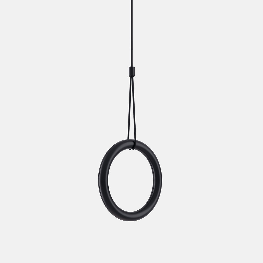 A single pendant lamp with a black cable supporting the ring, which can be used on its own or in compositions on Lodes canopies. LED, driver and canopy included.