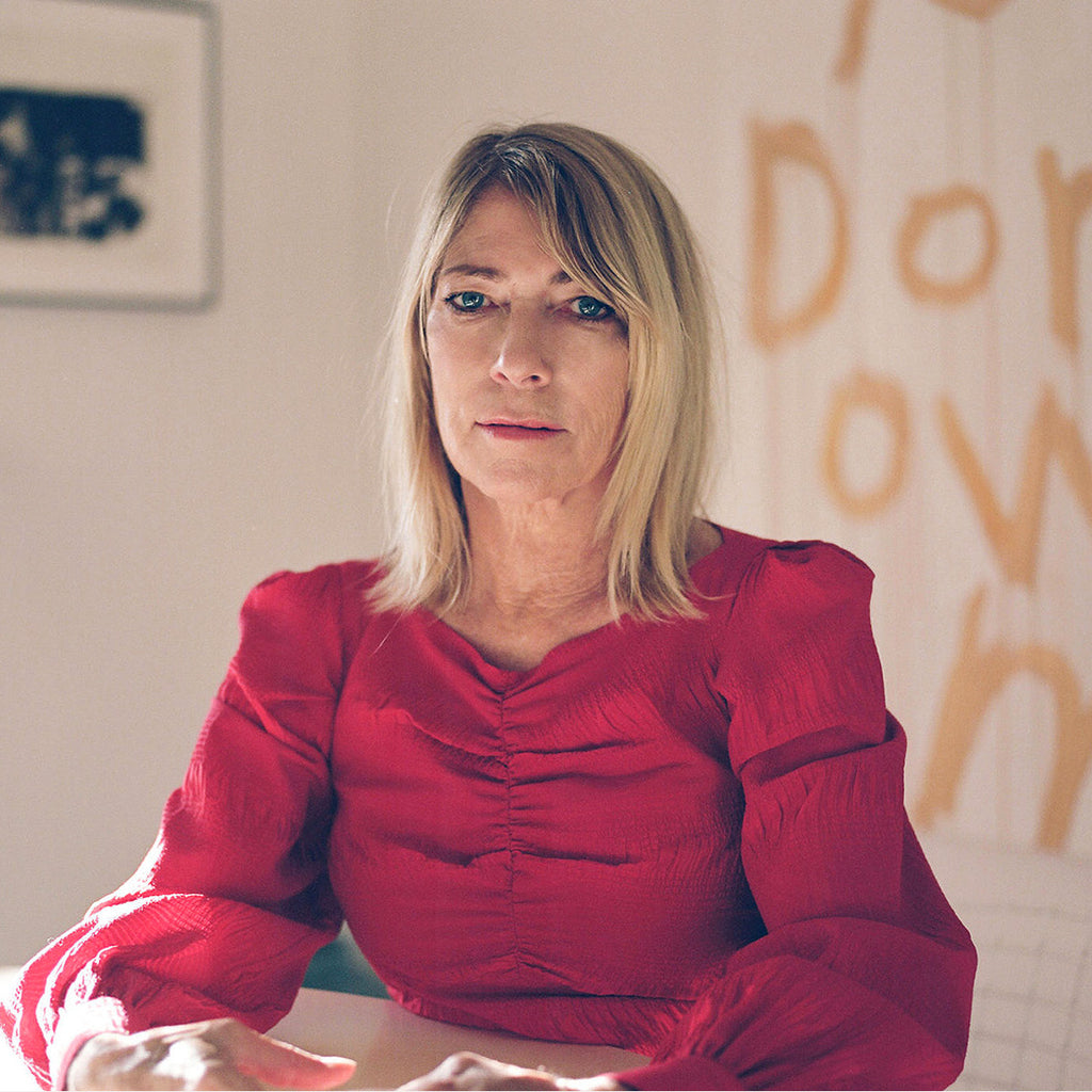 Celebrated for her work as a founding member of the experimental post-punk band Sonic Youth, KIM GORDON is a multi-disciplinary artist and thinker who has worked in fashion, visual art, writing, film, and music. Gordon’s rug is a one in a series of three, and is an adaptation of a vintage dress treated with tar and morphed into an abstract shape. Image: Kim Gordon portrait by David Black