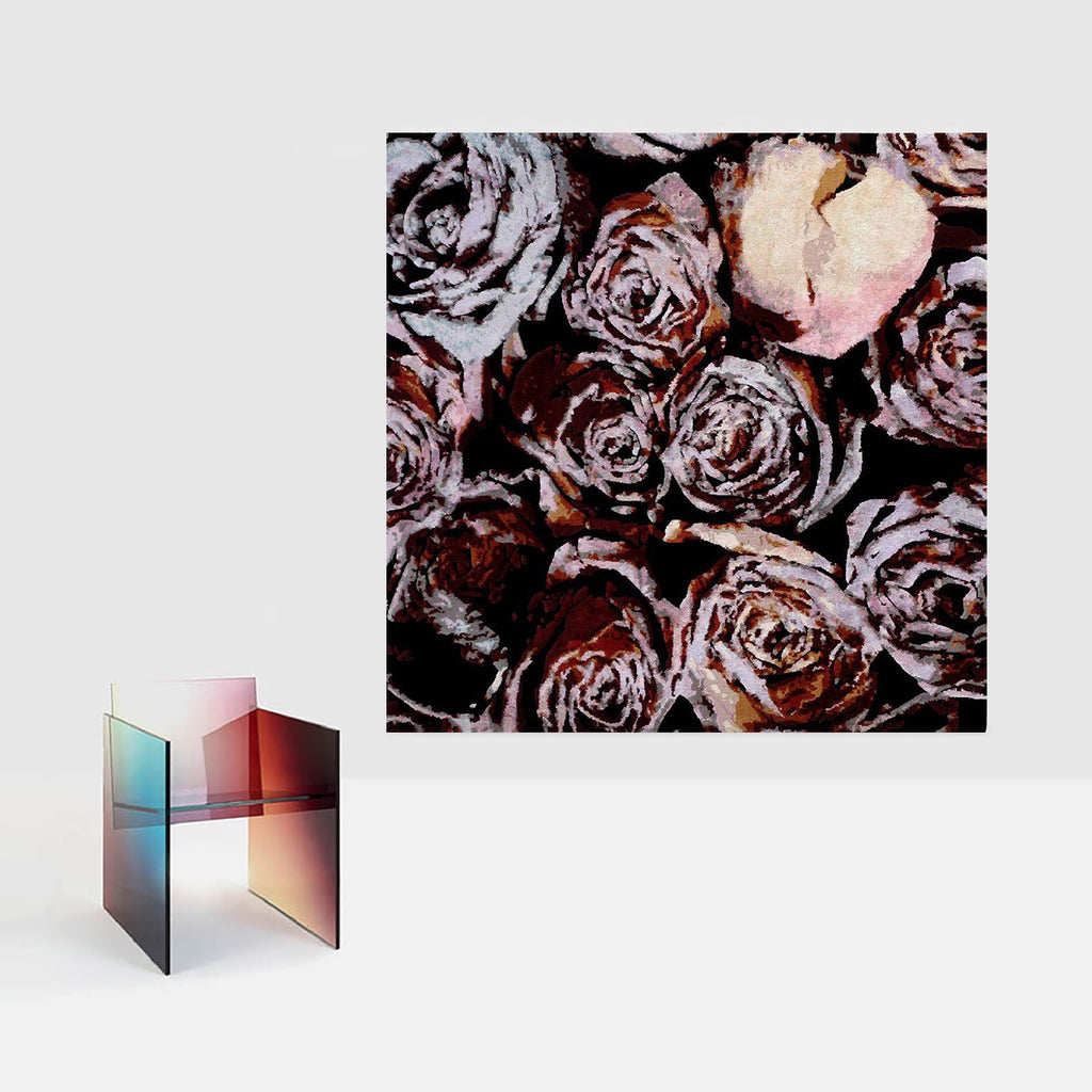 A groundbreaking photographer who has influenced subsequent generations, Nan Goldin has produced startling and revealing documentary pictures depicting segments of American culture rarely seen or discussed. Today, Goldin’s works are held in the collections of The Museum of Modern Art in New York, the Tate Modern in London, the Museum of Contemporary Art in Los Angeles, and the Centre Georges Pompidou in Paris, among others. For HENZEL STUDIO, Nan Goldin re-appropriated a photograph of dried roses, applying variable pile heights to the petals.