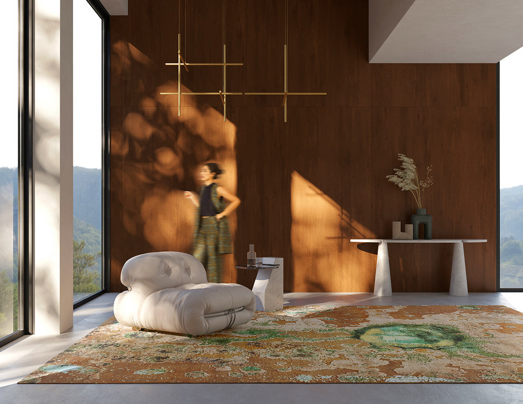 Curated by Joakim Andreasson, the collection is part of Henzel Studio Heritage, an ongoing program of art rugs established with foundations and estates of the most prominent artists of the 20th century. For the second installment of Henzel Studio Heritage: Andy Warhol, Andreasson identified Warhol’s Oxidation Paintings from 1978 as a captivating series to examine after experiencing one of the pieces at Andy Warhol: From A to B and Back Again, exhibition at The Whitney Museum For American Art in New York, 2019. Hours later, at a pre-scheduled meeting with The Andy Warhol Foundation For The Visual Arts, minds were aligned to explore the paintings’ adaptability into the media of rugs further. After two years of painstaking development and production, the result is a remarkably seamless adaptation, where similar oxidation outcomes and comparable textures have been achieved.